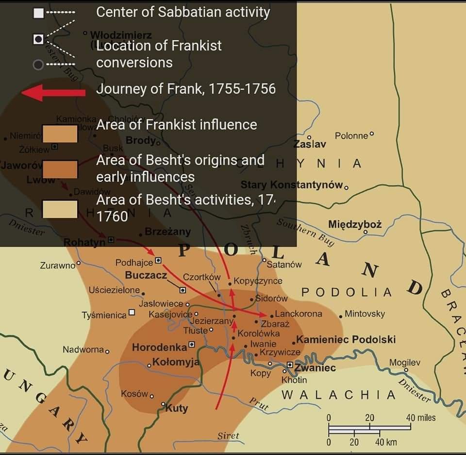 Existe um mapa da influência do movimento frankista, de Jacob Frank na região da Polônia, Hungria e Wallachia (Transilvânia) [IMAGEM 1 e LINK 3]