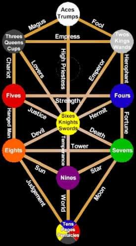 Relação da árvore da vida cabalística com as cartas do tarot (IMAGEM 5).