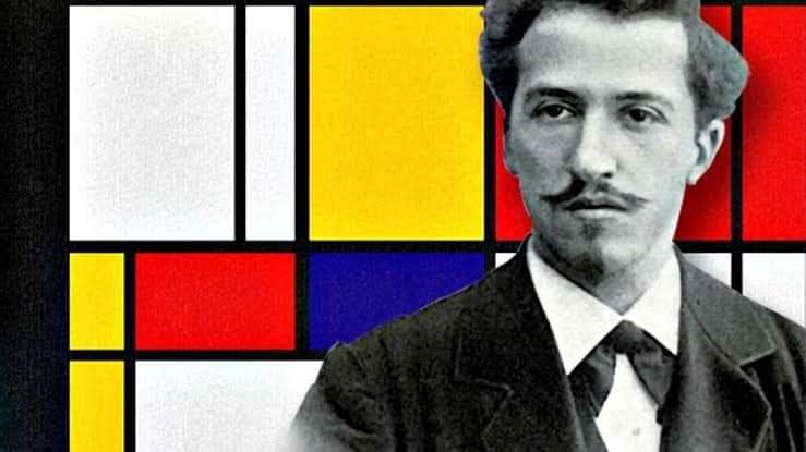 Existem muitas fontes esotéricas utilizadas pelos artistas modernistas que estavam juntos em Bauhaus como Malevich, Kandinsky e Mondrian, cuja intenção era lançar, por meio de sua obra, a possibilidade de um novo homem e de um novo mundo, livre de imperfeições e regido por uma nova ordem espiritual e social, onde reinasse harmonia ideal [IMAGEM 5]. Para Mondrian, membro da Sociedade Holandesa de Teosofia desde 1909, os elementos de sua arte precisavam estar rigorosamente equilibrados, a linhas verticais e horizontais dispostas sobre um plano único, permitindo apenas o branco, o preto e as três cores primárias (amarelo, vermelho, azul), que devem estar contidas entre essas linhas e nunca transbordar sobre elas. Kandinski (a famosa tela dele, Amarelo, Vermelho e Azul – Jaune, Rouge, Bleu [IMAGEM 6] tem referência com alquimia Mercúrio, Enxofre e Sal) Kandinski foi muito influenciado por Rudolf Steiner (por causa dele muitas das bandeiras da América Latina são Amarela, Vermelha e Azul, como a da Venezuela) Steiner foi dissidente de Blavatsky, fundador de sua própria seita – que tem escolas que através da pedagogia Waldorf, “educa” muitas crianças. Steiner foi defensor da teoria das cores de Goethe contra as de Newton. Goethe, que escreveu Fausto onde seu alter-ego Mefistófeles é um deus de negação e que influenciou Karl Marx (seus primeiros livros e poemas são influenciados pelo livro Fausto).