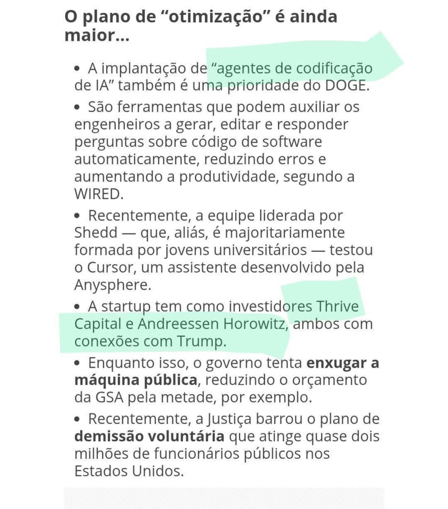 A aquisição de plataformas como o Twitter (rebatizado como X) e a integração de sistemas de IA em contratos governamentais lembram a estratégia dos robber barons do século XIX, como John D. Rockefeller e J.P. Morgan, que consolidaram monopólios sobre petróleo e ferrovias. Musk, porém, opera em um campo mais perigoso: a informação. Seu acesso a dados governamentais, como revelado no caso do sistema “GSAi”, ecoa a relação entre a IBM e o regime nazista na década de 1930, quando a tecnologia de cartões perfurados foi usada para otimizar a máquina burocrática do Holocausto – um paralelo explorado por Edwin Black em IBM and the Holocaust. A diferença crucial é que, hoje, a automação e a IA multiplicam exponencialmente o potencial de abuso.